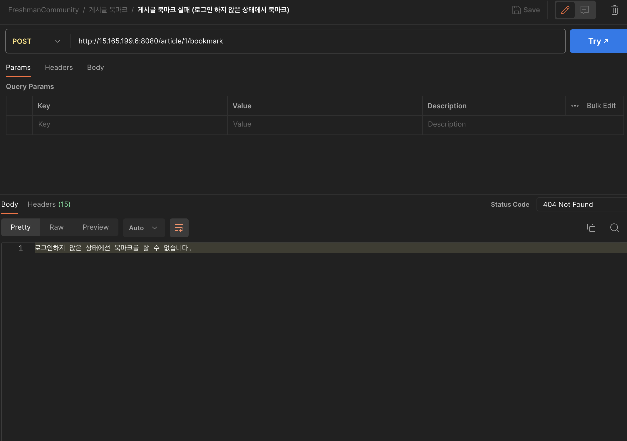 if(member == null) throw new MemberNotFoundException("로그인하지 않은 상태에선 북마크를 할 수 없습니다.");