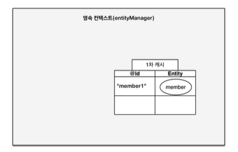 ์ ์ฝ๋๊ฐ ์คํ๋๋ฉด, 'Member' ์ํฐํฐ๋ ์์์ฑ ์ปจํ ์คํธ์ 1์ฐจ ์บ์์ ์ ์ฅ๋๋ค.