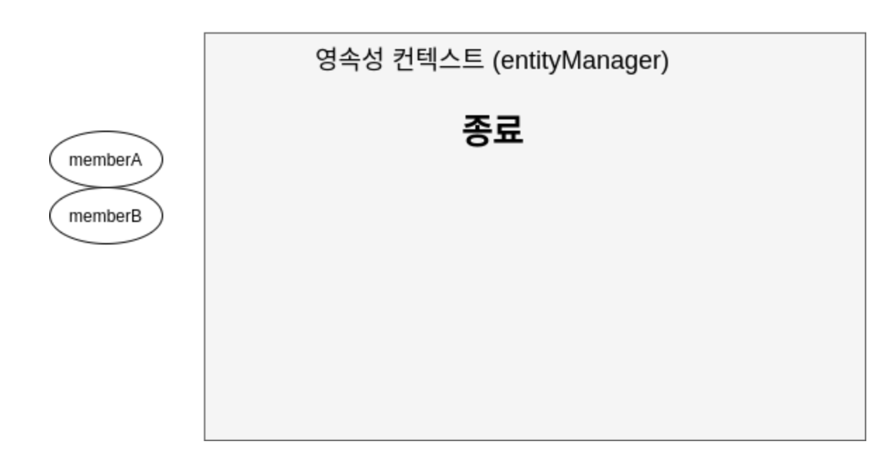 - ์์(Managed): ์์์ฑ ์ปจํ ์คํธ์ ์ ์ฅ๋ ์ํ์ด๋ค. ์๋ฅผ ๋ค์ด, em.persist(member);๋ฅผ ํธ์ถํ๋ฉด ์ด ์ํ๊ฐ ๋๋ค.