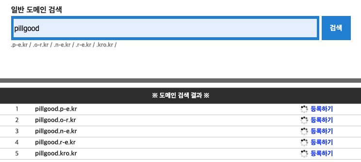 - 도메인 검색 및 선택: 원하는 이름으로 검색하여 등록할 수 있는 도메인을 선택한다.