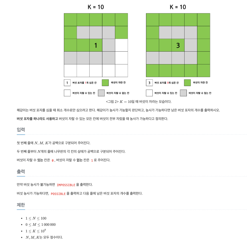 - 그렇지 않으면 POSSIBLE과 남은 포자(M - 사용량)를 출력한다.