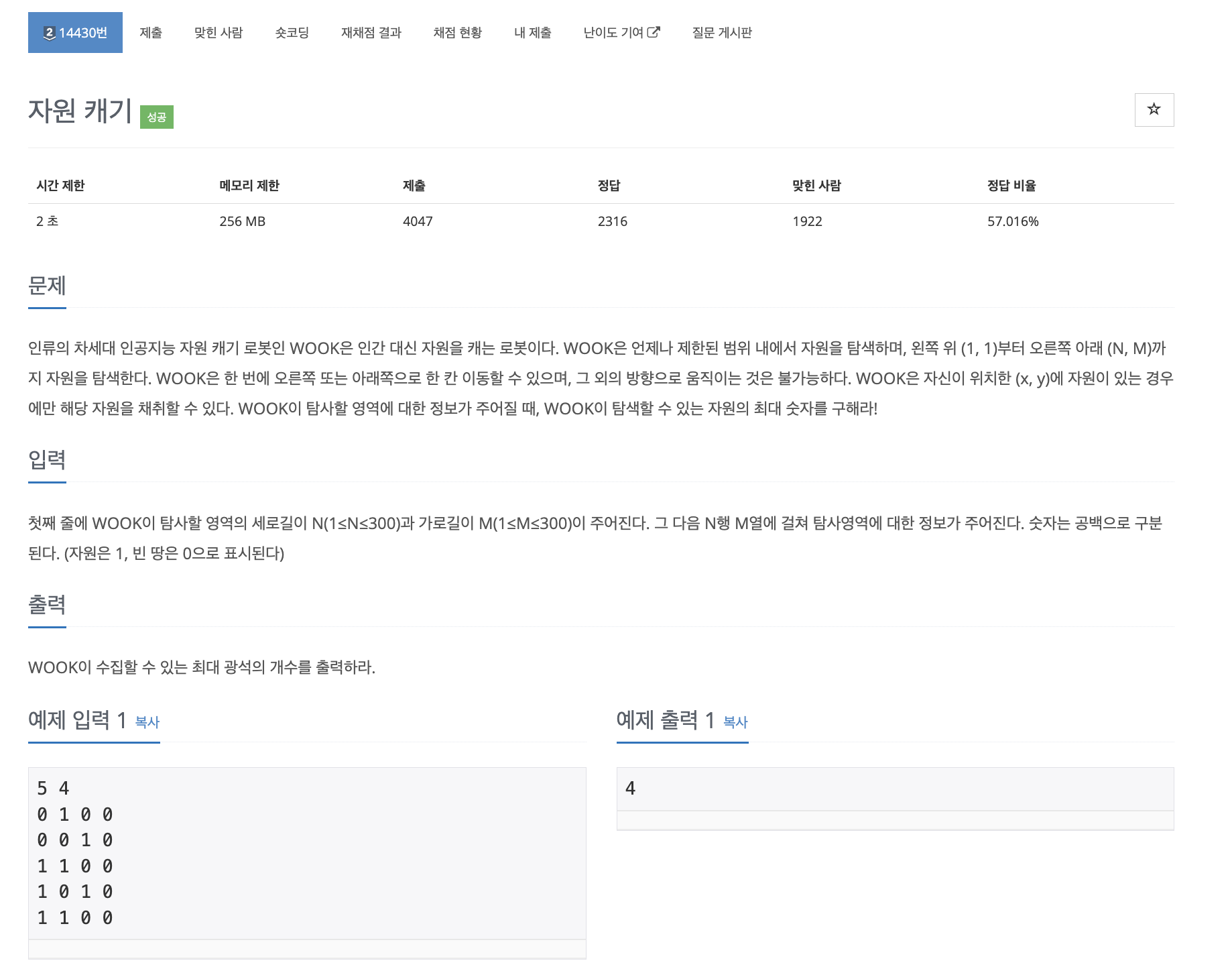 이번 문제는 WOOK이라는 로봇이 탐사 영역에서 최대한 많은 자원을 수집하는 문제이다.