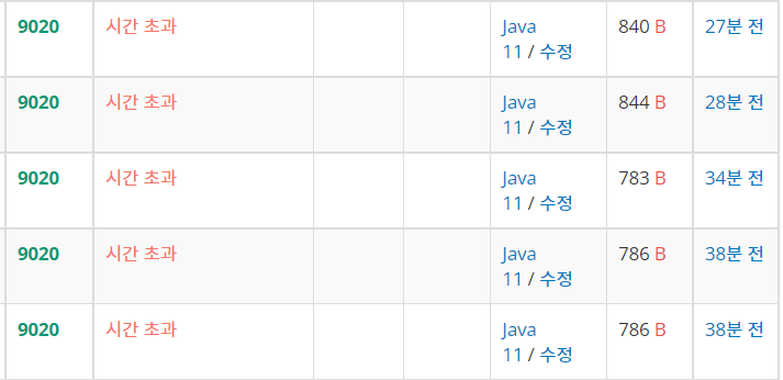 시간초과 문제가 생겼다 ㅠㅠㅠㅠ 아무리 잘 풀어도 시간초과면 땡이기 때문에.... 너무 아쉬웠다..