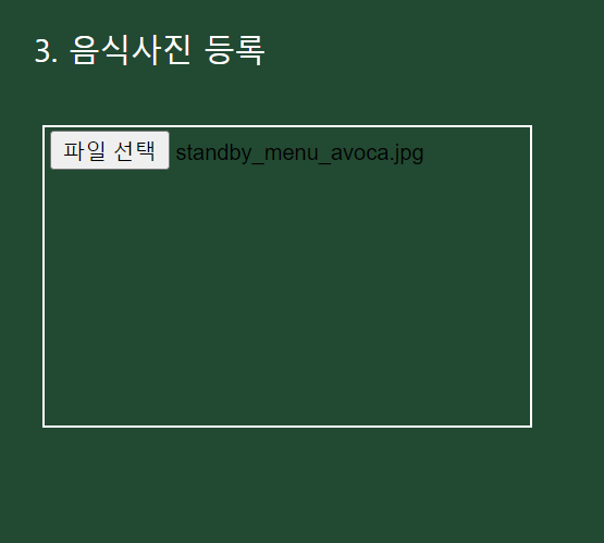 음식 사진을 등록할 때 파일 열기 버튼을 누르고 (깔끔한 파일 선택 버튼 만드는 방법은 전 글에 포스팅 하였습니다.^^)