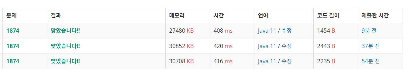 성공적..ㅎ 근데 if,else문도 너무 많고, 잘 안 읽히고, 처음봤을 때 이해하기 좀 어려운 코드를 짠 것 같았다.