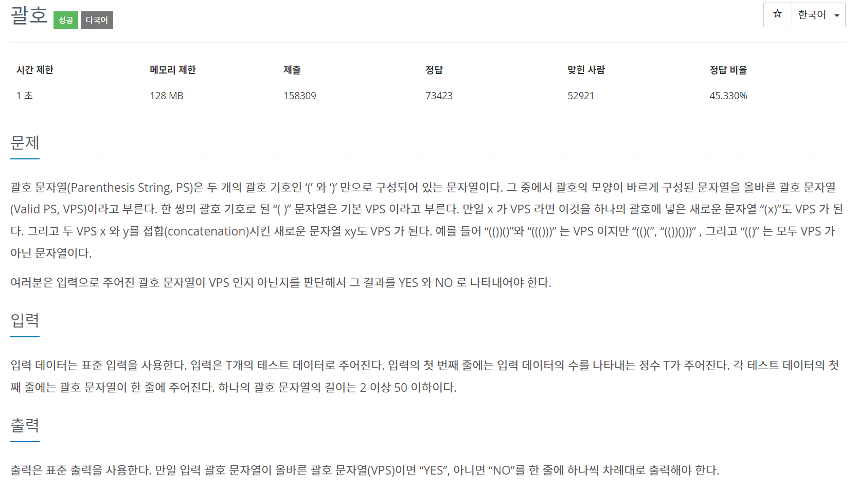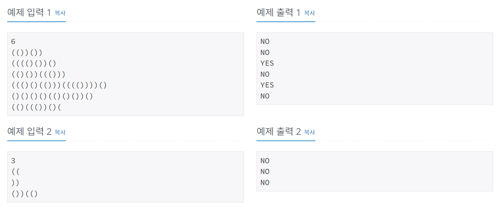 ) 일때 스택이 비어있다면 NO를 출력하고 바로 다음 줄 괄호로 이동.