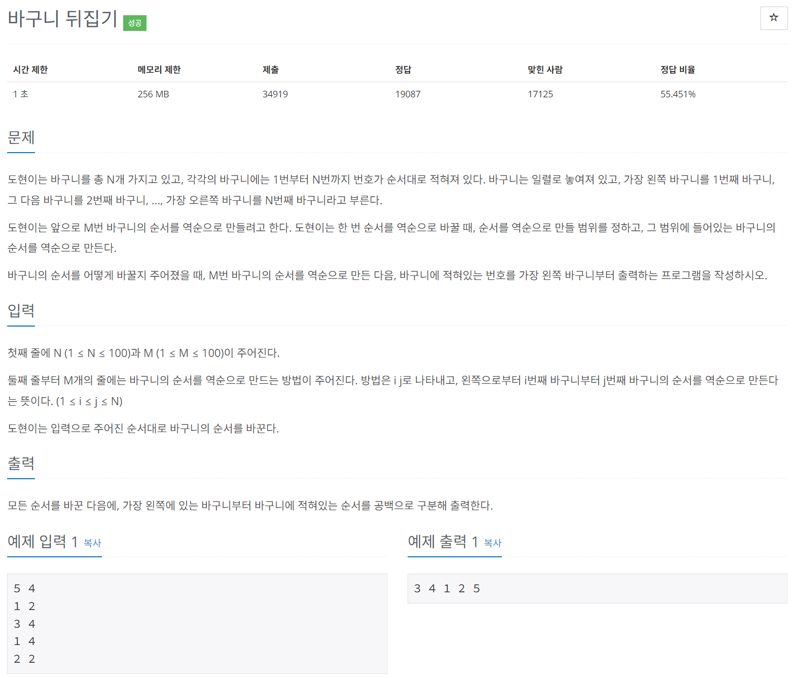 배열에서 두 항목을 교환시켜 결국엔 사용자가 원하는대로 바구니를 뒤집어주면 되는 문제