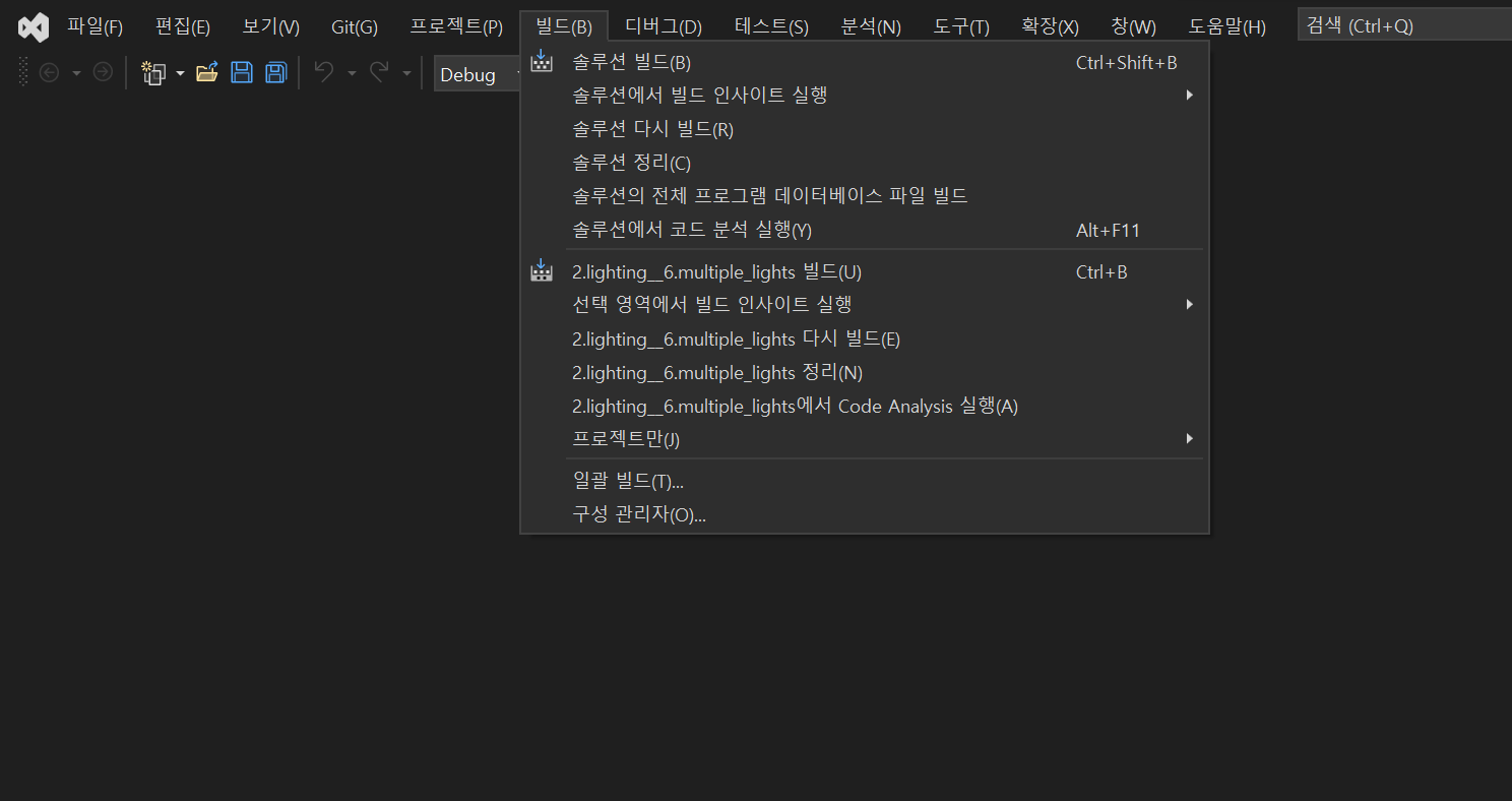 아까 만들어두었던 build 파일에 LearnOpenGL.sln 파일이 생긴 것을 볼 수 있다.
