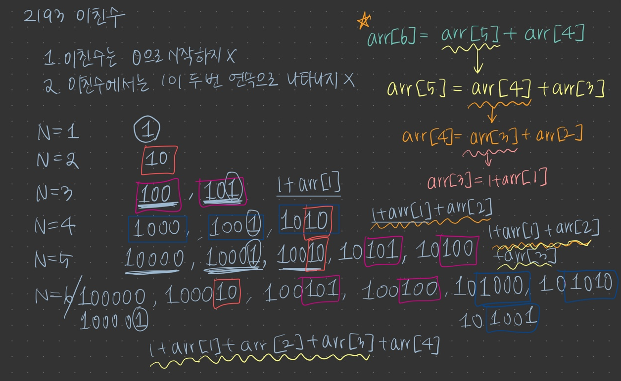 즉 N = 4 부터 arr[n] = arr[n-1] + arr[n-2] 인 점화식을 세울 수 있다!
