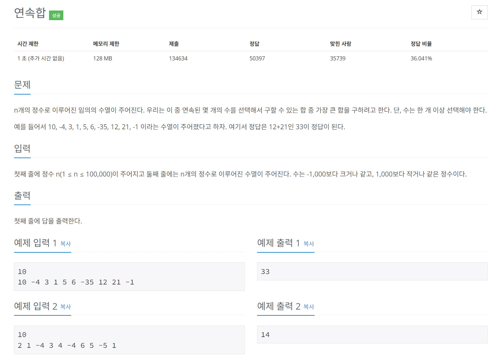 처음 배열엔 입력했던 수들을 넣어주고, dp 배열을 하나 더 만들어서 dp배열의 이전 것(dp[i-1]) 과 arr배열의 현재 것(arr[i])을 더한 값과, arr배열의 현재 값(arr[i]) 중 더 큰 값을 dp배열의 현재값에 넣어주고,