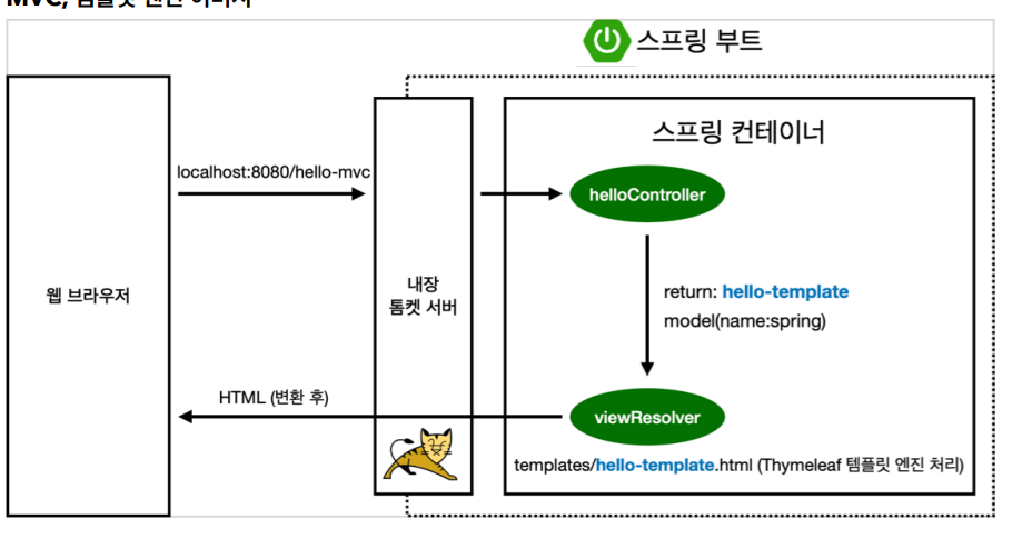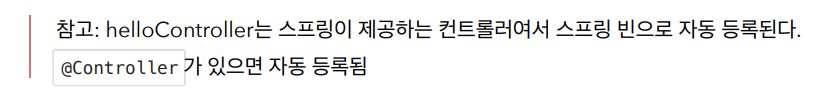 @Controller를 통해 컨트롤러가 스프링 빈(초록색 콩 모양)에 등록된다.