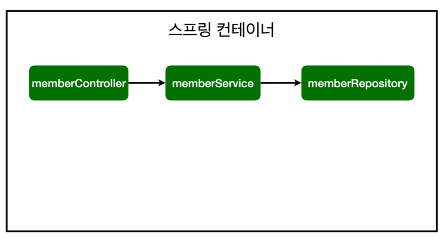 이제 스프링 컨테이너에 스프링 빈으로 등록이 되었고, 서로 의존관계를 가지게 되었다.