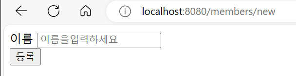 ์ด์ http://localhost:8080/members/new๋ก ๋ค์ด๊ฐ ์ด๋ฆ์ ์