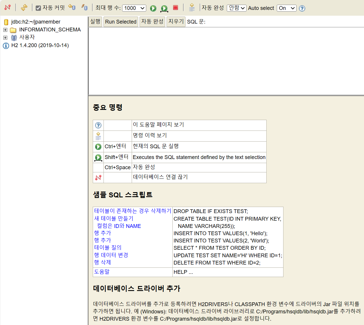 ๐ป H2 ํ ์ด๋ธ ์์ฑ ๋ฐ ์คํ