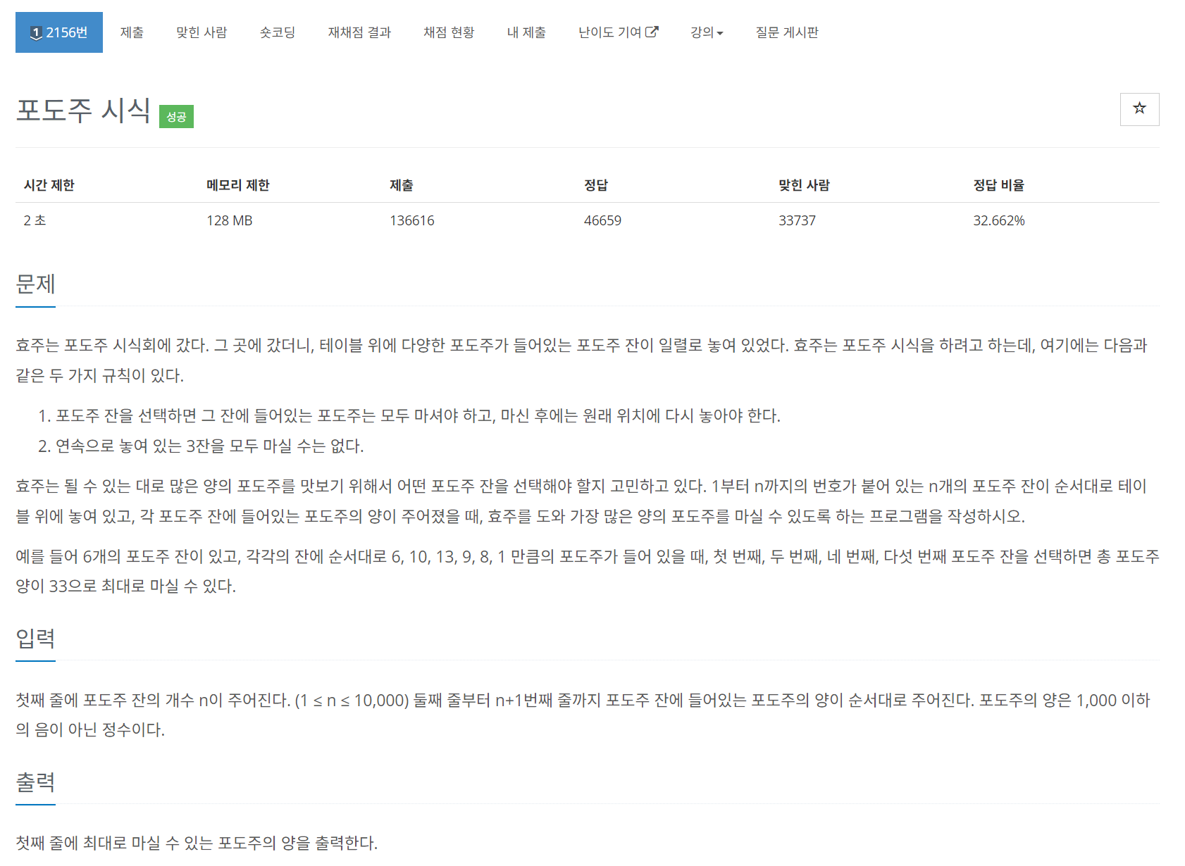 # i-2번째 포도주 마시고 i-1번째 포도주 마심 X O X