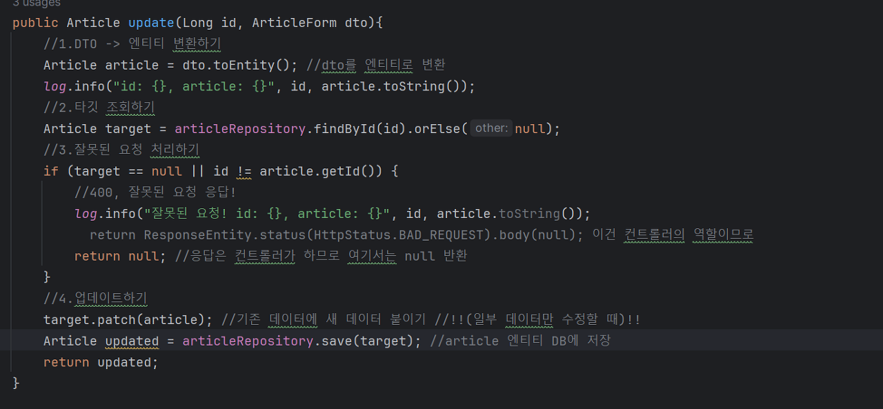 target.patch(dto)이기 때문에 DB에서 findById로 가져와 target변수에 넣어준, 즉 target id를 의미하는 것일까?
