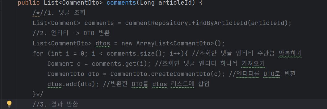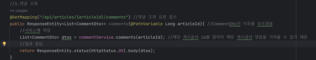 기사 조회할 때랑 똑같이 그냥 commentRepository.findByArticleId(articleId);만 해주면 되는 것 아닌가?