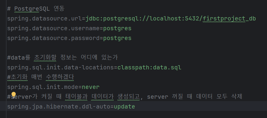 data.sql에 작성된 데이터는 없으면서, db에 데이터는 계속 쌓고 싶다. --> 이것이 지금 내가 원하는 것이므로