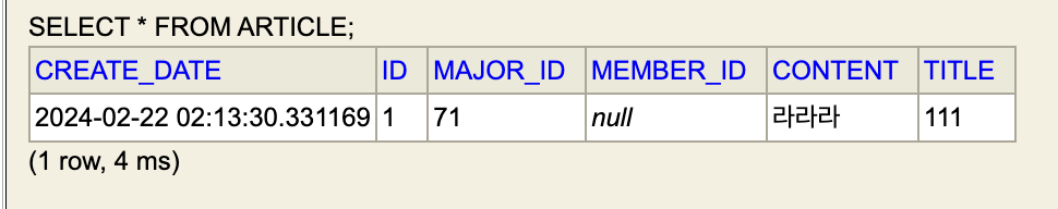 짜잔. member_id 컬럼이 null로 바뀐 것을 볼 수 있다.