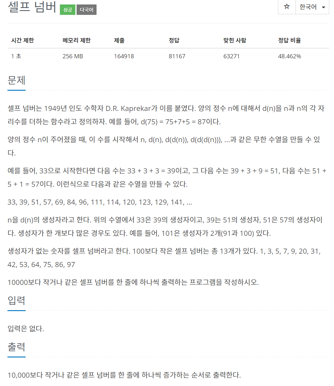 또, 함수를 만들 때에도 나는 정수형 인자를 받아 문자열로 바꾸고, 또 거기서 다시 정수형으로 바꾸는 식으로 되게 복잡하고 코드를 작성하였는데, private static int getDn(int n) { int Dn = n; while(n>0) { Dn = Dn + (n%10); n = n/10; } return Dn; }}