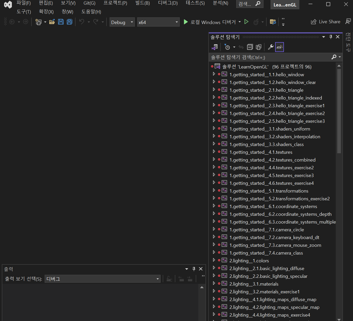 아까 만들어두었던 build 파일에 LearnOpenGL.sln 파일이 생긴 것을 볼 수 있다.