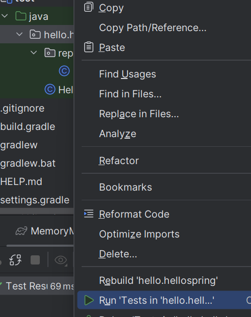 src/test/java/hello.hellospring/service/MemberServiceTest ํ์ผ์์์ ์์