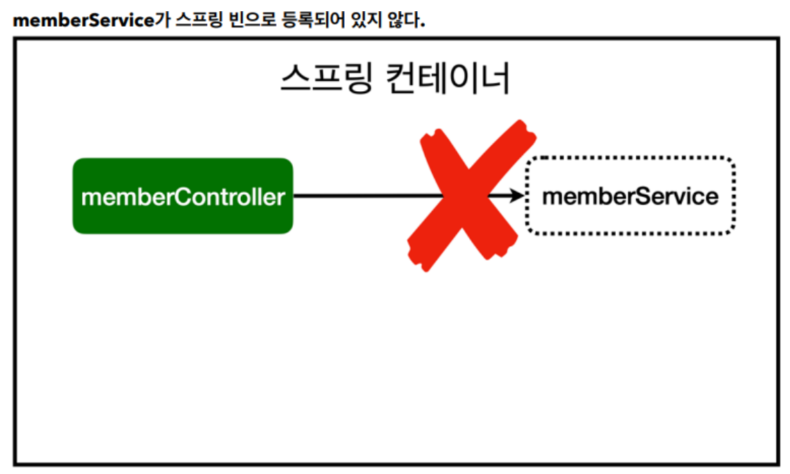 MemberController가 MemberService를 통해 회원가입하고 데이터 조회하기 위해 @Autowired를 통해 스프링 컨테이너에 있는 MemberService를 가져와야 하는데, 현재 스프링 컨테이너에 MemberService가 없다.