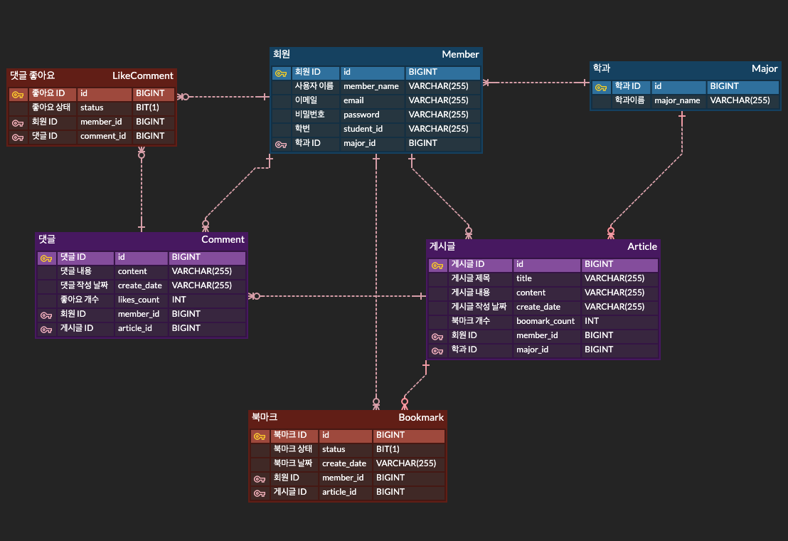 일단 회원가입, 로그인 등의 멤버 로직을 만들기 위해 필요한 엔티티는 Member와 Major이다.